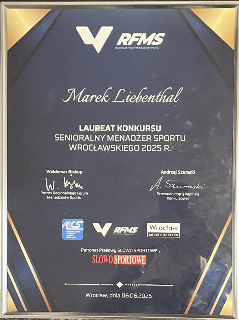 W czwartek, 6 czerwca 2025 roku, w auli Stadionu Olimpijskiego we Wrocławiu odbyła się uroczysta Gala „Senioralnego Menadżera Sportu Wrocławskiego”, organizowana przez Regionalne Forum Menadżerów Sportu (RFMS).